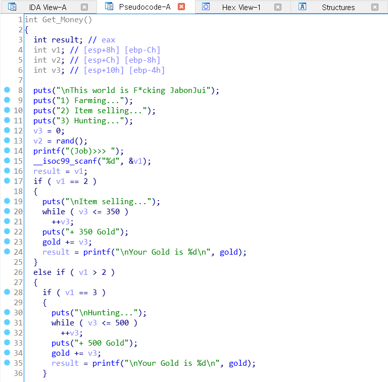 - case 2는 Get_Money() 함수를 실행시킨다.