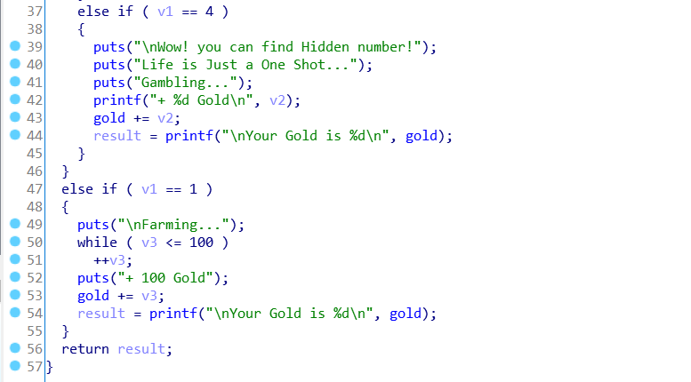- gold를 많이 얻기 위해서는 v1에 4를 입력해 주어야 한다.
