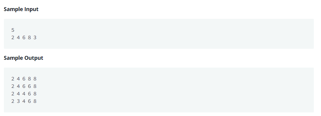 정렬된 리스트에 새로운 값을 오른쪽에 넣는다 하였을 때 올바른 자리에 넣기까지의 과정을 출력하라.