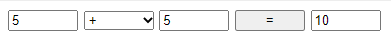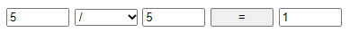 - 두 개의 값을 텍스트 위젯으로 받아서 덧셈, 뺄셈, 곱셈, 나눗섬을 하는 웹문서를 작성하시오. 이 때 <select>요소로 연산자를 입력받아서 계산한다.